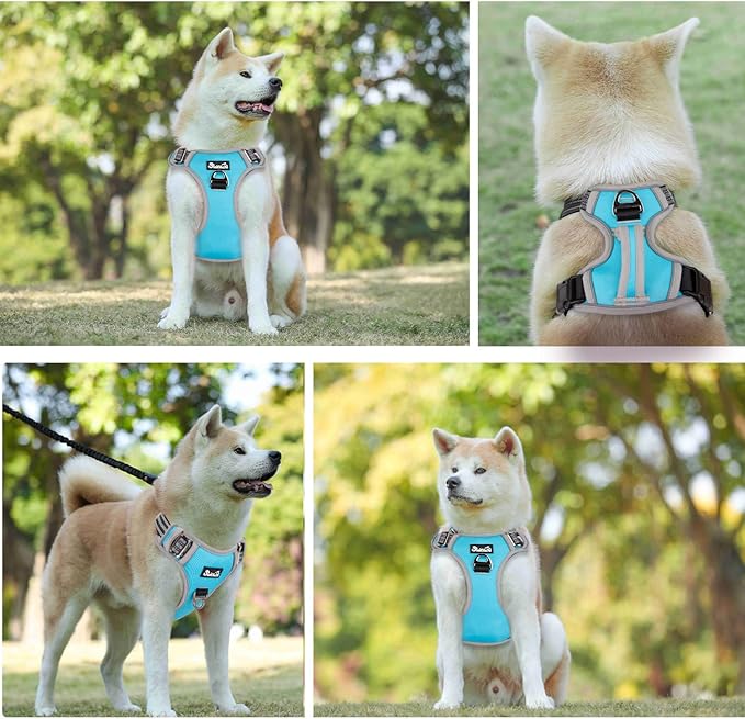 Lukovee No Pull Dog Harness, No Choke Adjustable Dog Harness with 2 Leash Clips and Easy Control Vertical Handle, Soft Padded Dog Vest for Medium and Large Dogs (Medium, Blue)