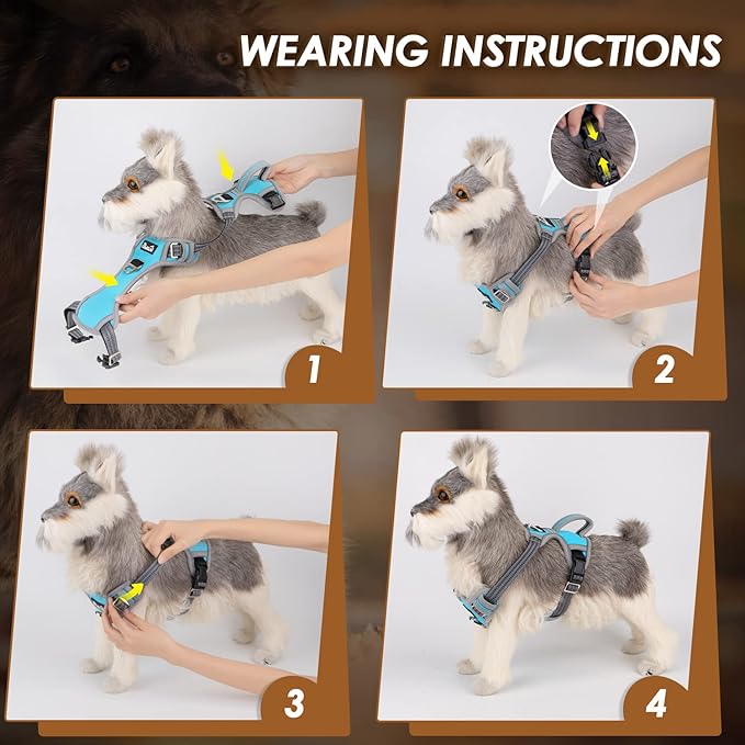- 【EASY TO WEAR】--- Simply sleeve in from the head and buckle up on both sides to wear the dog harness. 4 adjustable straps and 2 quick snap buckles make the heavy duty harness easier to put on and take off. Double locking buckles also strengthen security.