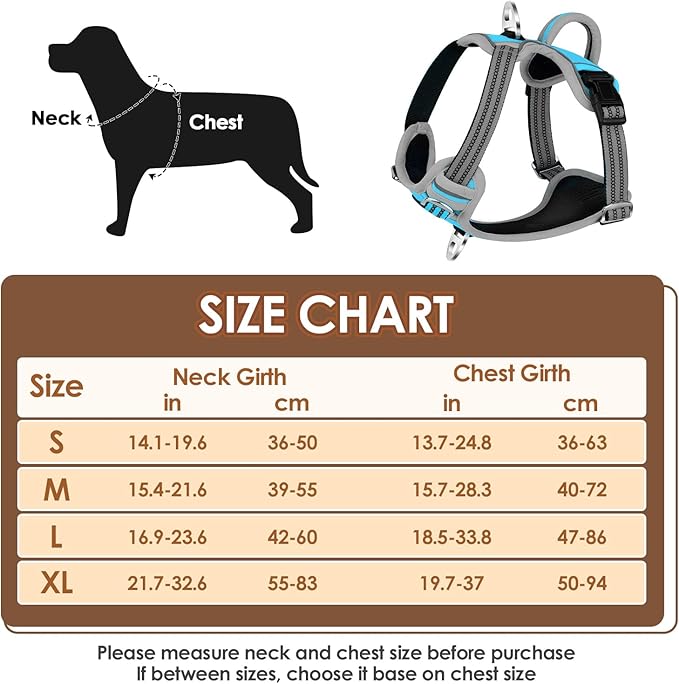 - 【VERTICAL HANDLE OFFER MORE EVEN STRESS】--- Forced on three sides design help to evenly distribute pulling pressure into three parts of the body to prevent choking. The design of heavy duty dog harness would be more easy to control our dogs.