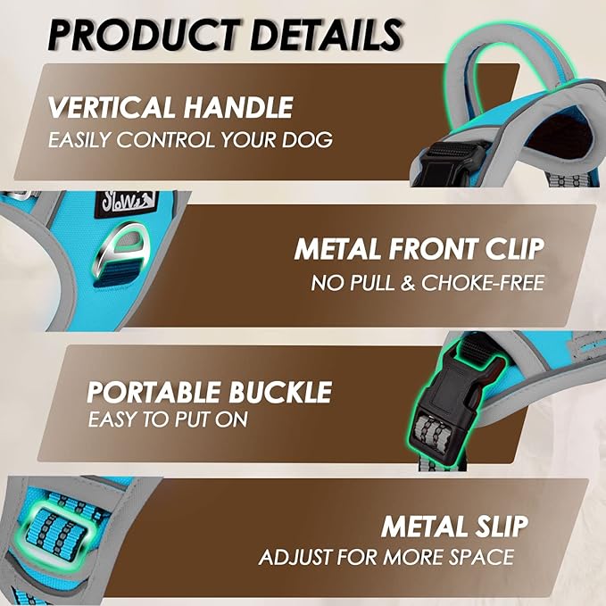 - 【MUCH SAFER & MORE COMFORTABLE】--- The soft padded, top vertical handle is ergonomic, easy to lift, and comfortable to provide extra control when your dog is too active or tends to pull. Well sewn reflective material in the straps won’t crack easily and can durably ensure high visibility and safety when walking at night.
