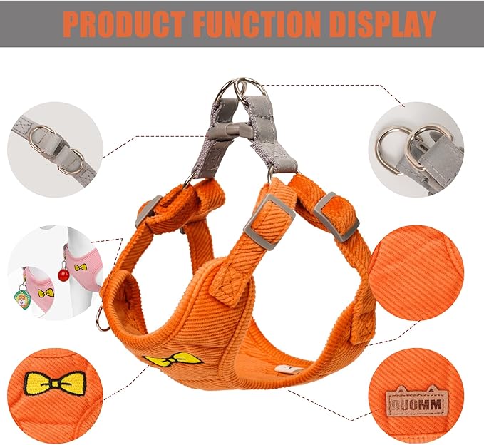 - Design with your pets’ safety in mind - Custom durable metal double D-ring for top lead and front lead, gives you full control of your pets without choking them. Built with comfy cushioning, and reflective stitching for safety in low-light situations.55 inches long matching leash, the hook attached on top of the leash is 360-degree rotatable.