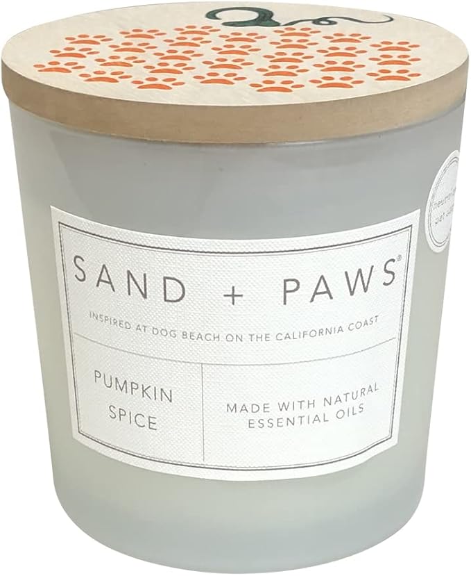 Sand + Paws Scented Candle - Pumpkin Spice - Additional Scents and Sizes –Luxurious Air Freshening Jar Candles Neutralize pet Odors and Enhance Home décor – 100% Cotton Lead-Free Wicks - 21 oz