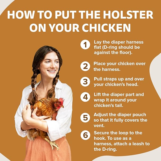 - INDOOR AND OUTDOOR FREEDOM - Let your chickens wander with peace of mind using the Hen Holster Chicken Diaper. Perfect for both indoor and outdoor use, these diapers prevent any mess on your furniture and floors, enabling your chickens to freely explore without any worries about cleanliness.