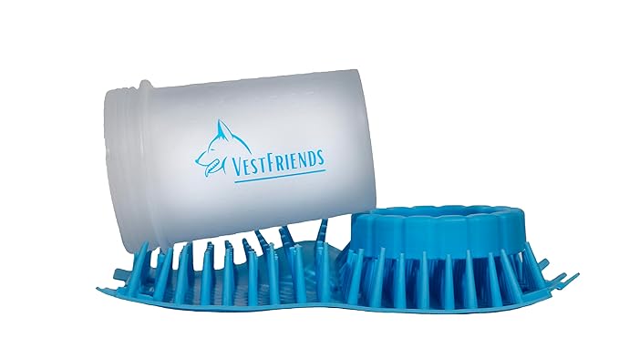 - With the VestFriends Portable Dog Foot Cleaner, achieving clean paws has never been easier. Featuring a large cup design and soft, clustered silicone bristles, our product provides comprehensive paw coverage and a gentle cleaning experience. This ensures that every time you use the VestFriends Paw Cleaner, you can count on achieving perfectly clean paws with minimal hassle.