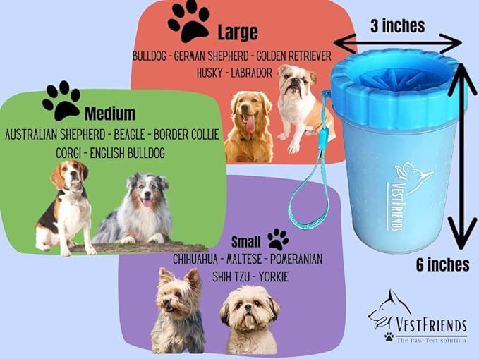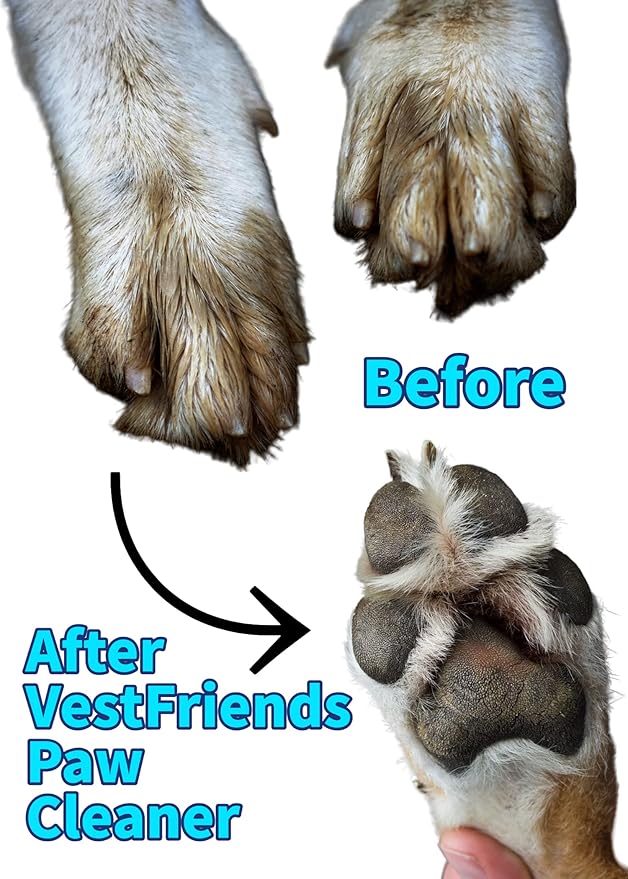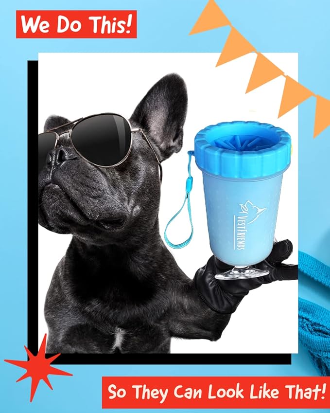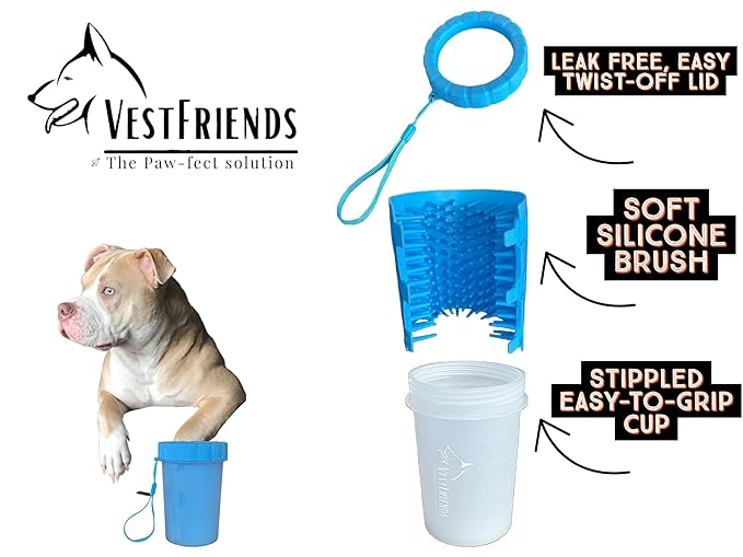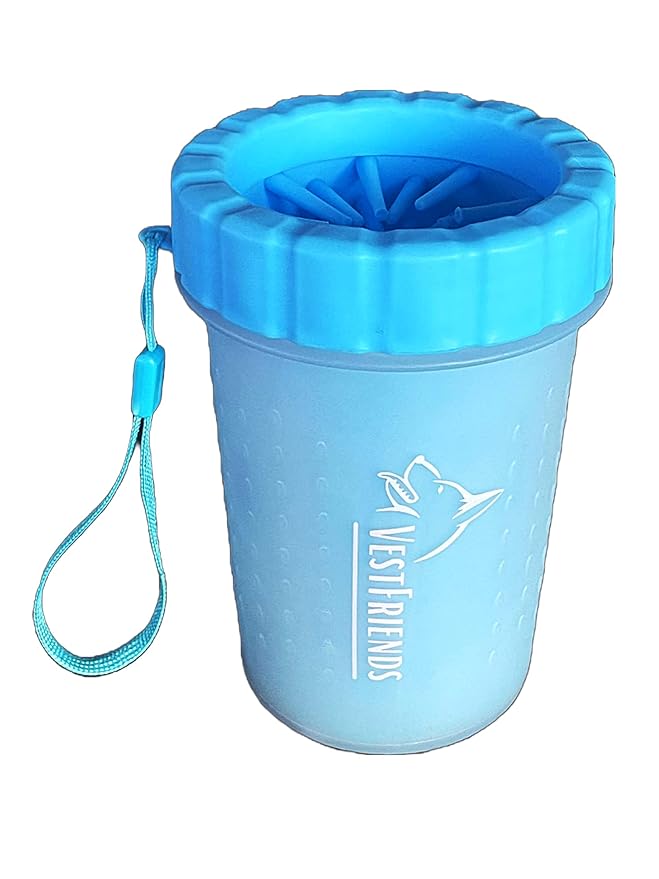 - The VestFriends Portable Dog Foot Cleaner offers a stress-free solution to muddy paws. Say goodbye to the anxiety of a messy car or home - our product is designed to prevent messes before they happen. With its easy-to-use and travel-friendly design, the VestFriends Paw Cleaner provides a hassle-free experience for both you and your furry companion.
