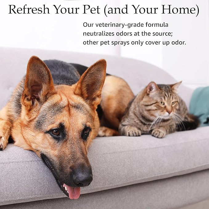 - Cat and Dog Deodorant: Target and eliminate source of pet odor with pleasant Sweet Pea & Vanilla scent infusion. Natural deodorizing formula combats odors hiding in thick fur or skin folds.