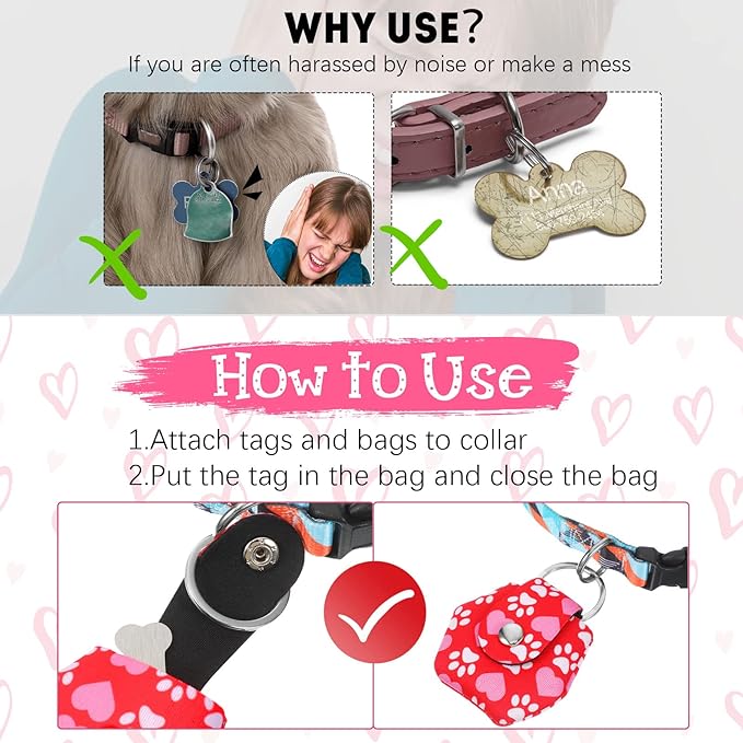 - Quiet and silent: the dog tag cover with tag ring can be connected to the dog collar, which can reduce the noise when your dog is running or jumping, letting the dog or owner have a quiet environment to sleep