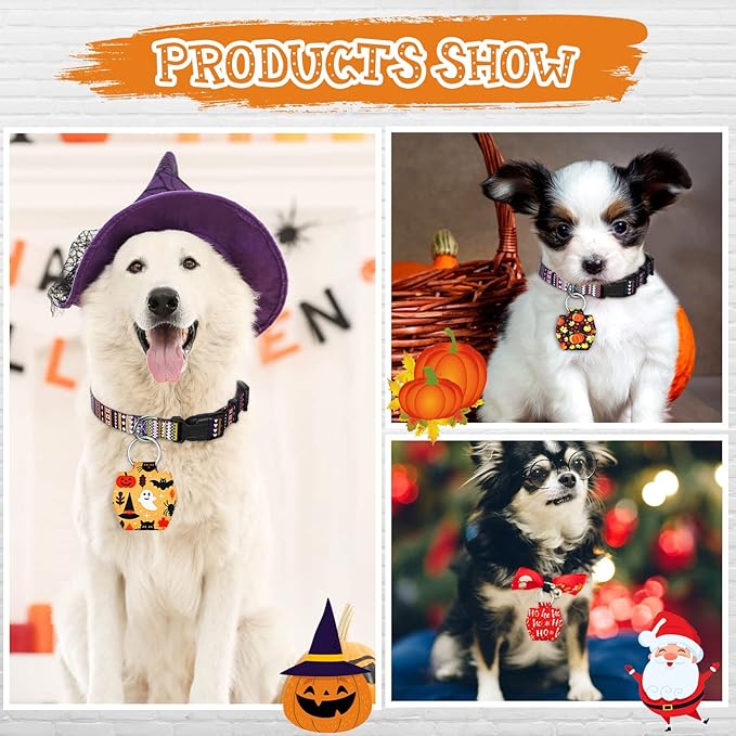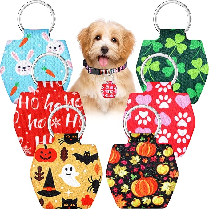 Reginary 6 Pieces Dog Tag Holder Portable Pet ID Tag Soundless Dog Tag Silencer Bag Dog Tag Cover with Rings Quiet Dog Tag Bag Protector for Dogs Cats Pets (Festival Style)