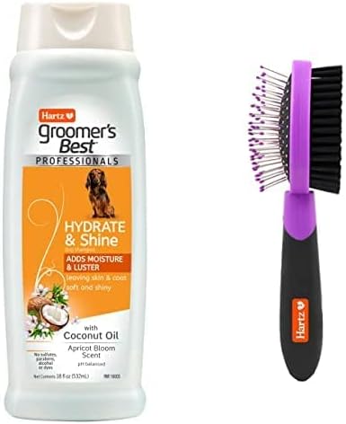 Hartz Grooming Supplies Bundle with Groomer's Best Professionals Hydrate & Shine Dog Shampoo and Small Combo Brush for Dogs, Good for All Dogs & Coat Types
