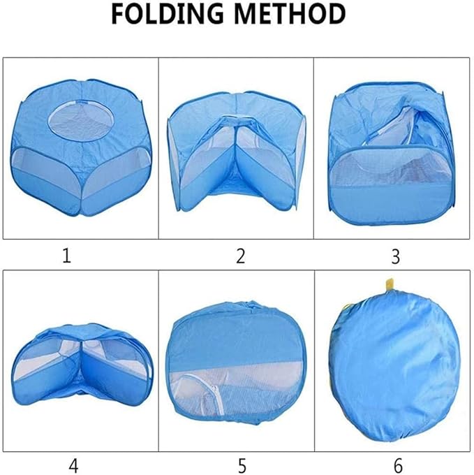 Small Animal Playpen,Portable Small Animal Cage Tent Breathable Pet Playpen Cage Tent Pop-Up Outdoor&Indoor Exercise Fence for Hamster Guinea Pig Rabbit Puppy Hedgehog (Blue with Cover)