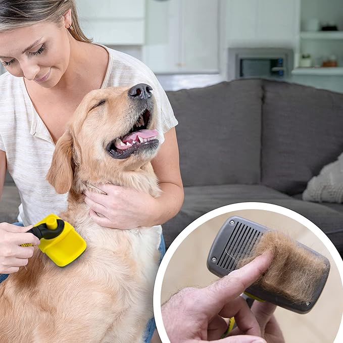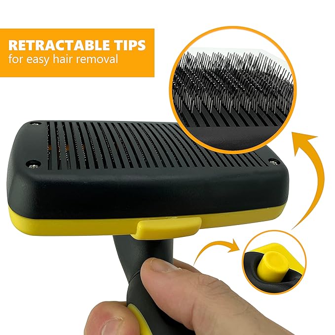 Self-Cleaning Grooming Brush for Dogs and Cats, Retractable Bristles for Easy Hair and Fur Removal - 7.5" Size