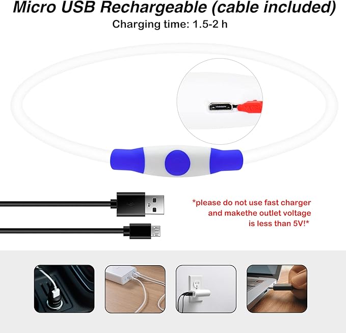 - Cutable size: The Glow dog collar is 70 cm (27.5 inches) in length, and the TPU tube can be cut to any size to fit your pet's neck size, so you don't have to worry about buying the wrong size