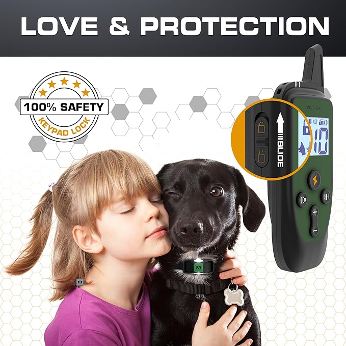 - Safe Training Collar For Dogs: Decrease accidental shock by sliding the security keypad lock to avoid misoperation. Award-winning dog training & behavior aids