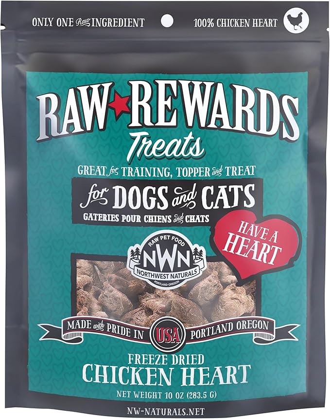 Northwest Naturals Raw Rewards Freeze-Dried Chicken Heart Treats for Dogs and Cats - Bite-Sized Pieces - Healthy, 1 Ingredient, Human Grade Pet Food, All Natural - 10 Oz