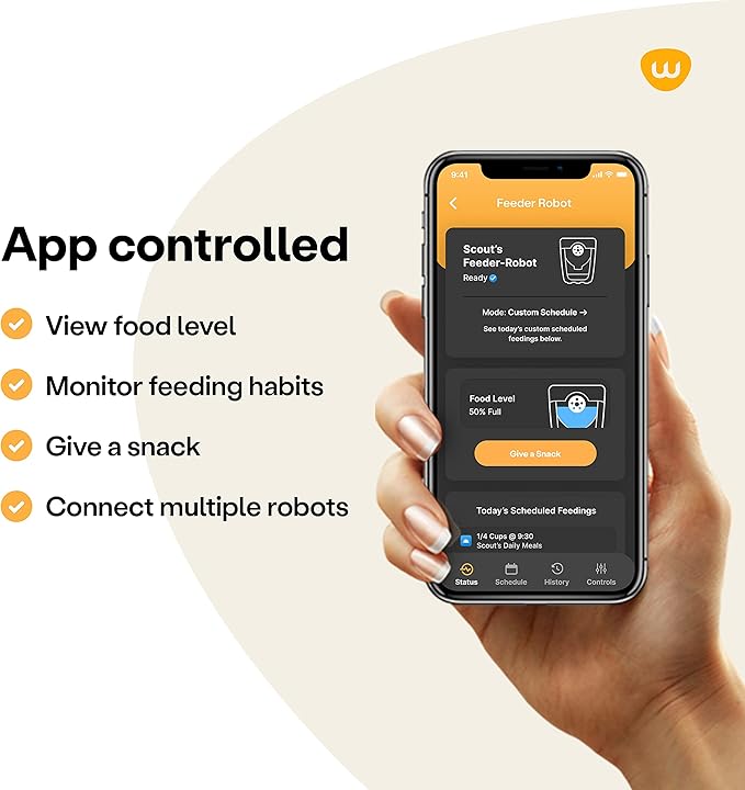 - MONITOR + CONTROL VIA APP: Using the Whisker app, feed your pet from anywhere and track your pet's eating habits with the history feature. Customize feeding schedules and promote healthier habits for your pet with portion-controlled meals.
