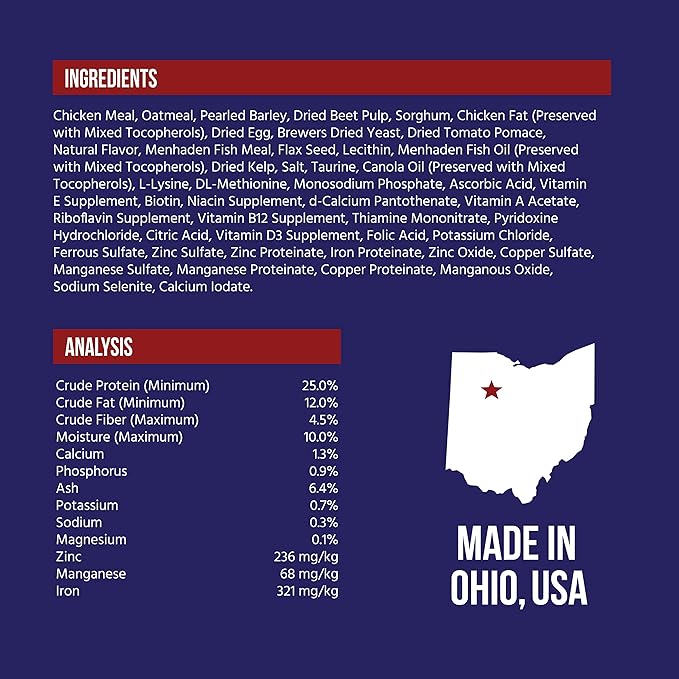 - EFFICIENT SOURCES OF ENERGY - premium chicken fat, canola oil and healthful, whole grains for sustainable energy.