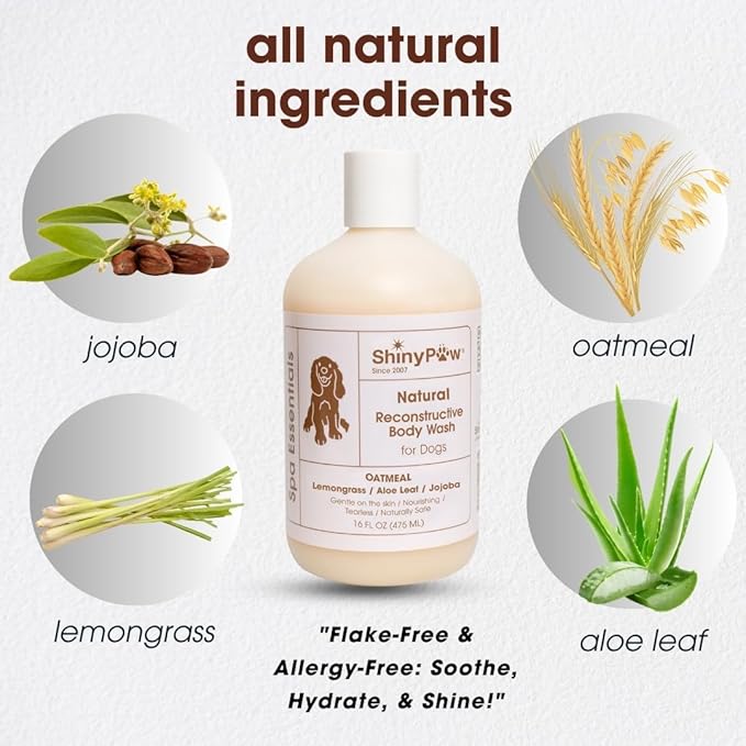 Oatmeal Shampoo for Dogs | ShinyPaw Dog Shampoo for Allergies and Itching | Controls Dog Shedding Naturally | Itchy Skin Relief for Dogs | Tearless Dog Shampoo & Conditioner Made in The USA | 16 oz