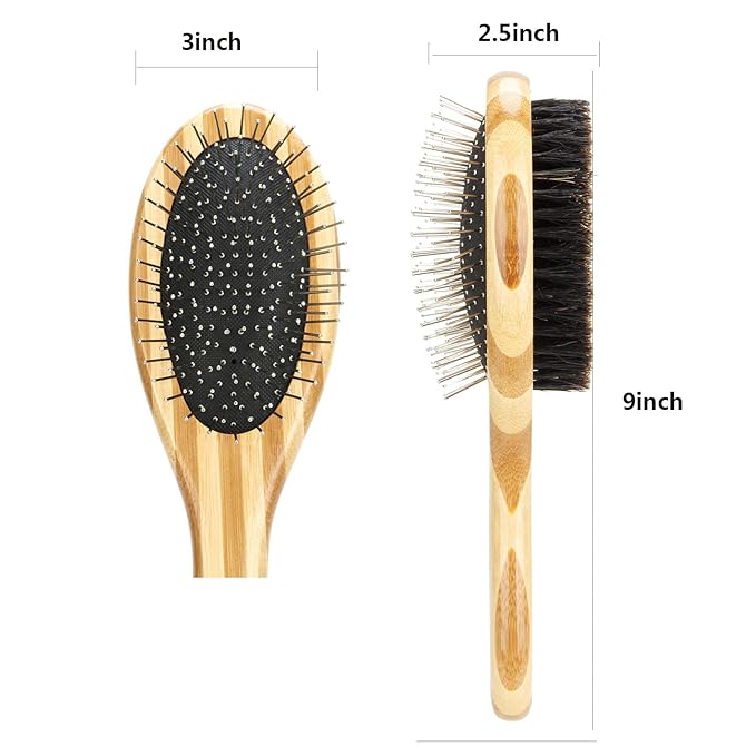 - Material: Original bamboo handle,Natural Bristle and stainless steel pins.Silicone with Airbag.