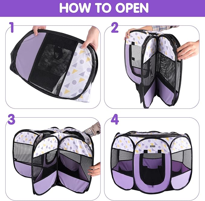 - 【High Quality】Our kitten and puppy play pen is made of scratch-resistant 600D Oxford cloth and high-grade thick mesh, durable and waterproof material. It designs 8 side-panels to provide a spacious interior for your pet to play, nap, or isolate