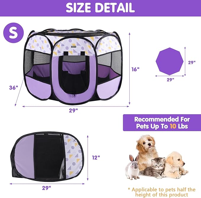 - 【High Quality】Our kitten and puppy play pen is made of scratch-resistant 600D Oxford cloth and high-grade thick mesh, durable and waterproof material. It designs 8 side-panels to provide a spacious interior for your pet to play, nap, or isolate