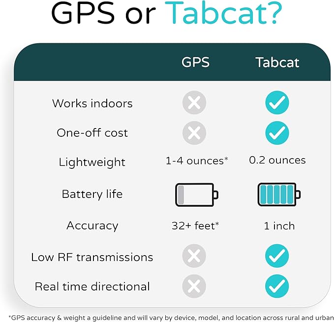 - LONG-LASTING: With long battery life (3 to 12 months depending on use) and minimal radio frequency emission, TabCat is a safer and longer-lasting option compared to GPS trackers that require frequent recharging and much more powerful transmissions