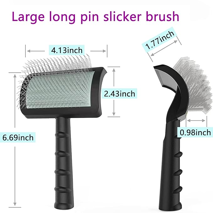- 🐶🐱【Support Most Dogs&Cats】Dogs like Giant Poodle, Samoyed, Great Pyrenees, Poodle, Bichon Frise, West Highlander, Pomeranian, Silver Fox, etc. And Cats like Ragdoll, Persian, Maine Coon, Chinchilla, Oriental Longhair, British Longhair, etc. It’s smart of you to choose the long pin slicker brush if you are very picky with pet grooming tools. Don't hesitate to Add to Cart and get this large long pin slicker brush.