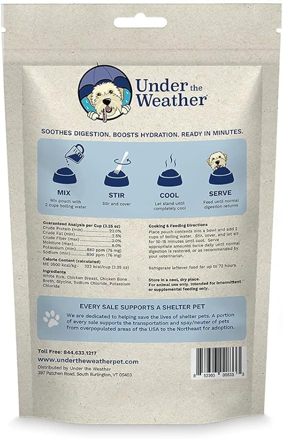Under the Weather Bland Diet for Dogs | Easy to Digest for Sick Dogs |Always Be Ready| Contains Electrolytes - All Natural Freeze Dried 100% Human Grade Meats| 6 Pack- Chicken, Rice & Bone Broth - 6oz
