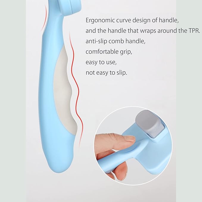 - 【Functional design👍】The 135 degree angled design of the bristles ensures that pet hair is taken away faster and more efficiently than other pet combs. This saves you time and effort. The brush's handle bends ergonomically, which can save more effort. At the same time anti-slip rubber can reduce finger slippage. You can groom your pet's hair more easily.