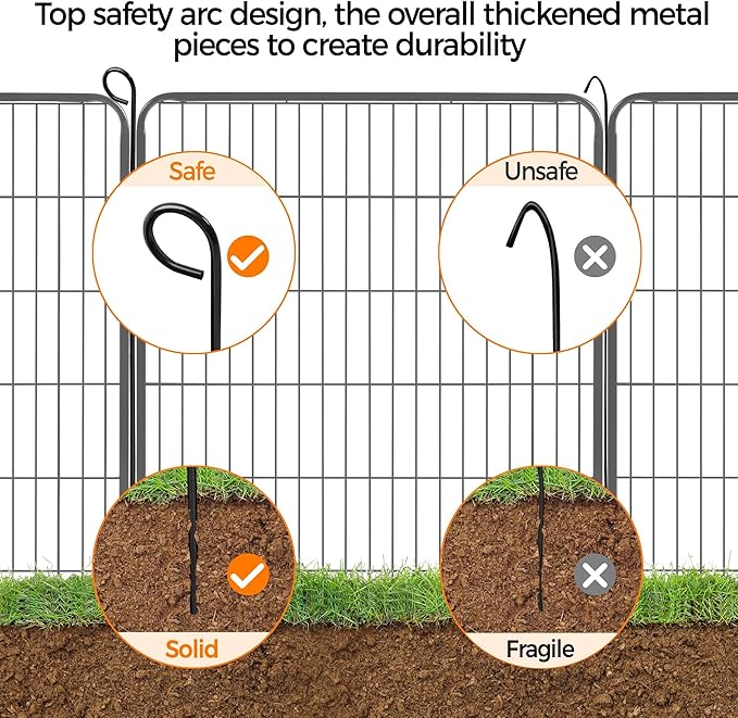 - Flexible: Panels are connected by metal anchor stakes. If you select more than one set of panels, detachable panels can be set up in different shapes by adding or removing panels, helping you build a pet pen according to the space and your needs