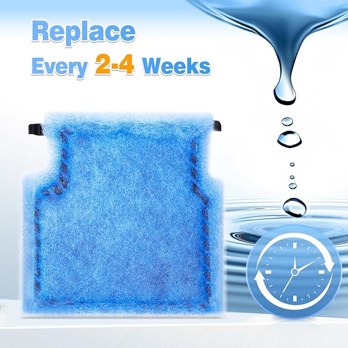 - 🐠🐠【Sincere Advice】: According to the test, the filter cotton has already withstood too much impurities for no more than four weeks, so you need to replace it with a new one. For optimum performance, replacement approximately every 2-4 weeks is recommended.