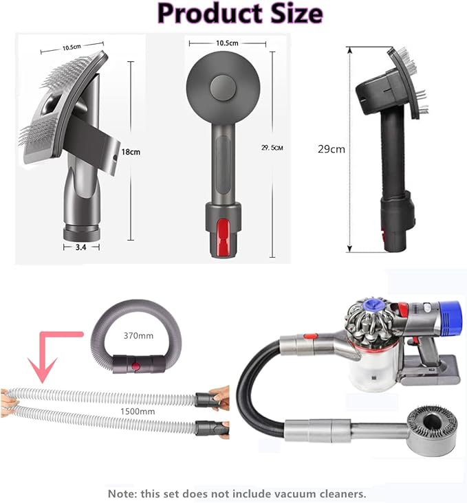 Dog Cat Short Hair Groom Brush Tool Attachment Kit Compatible with Dyson V7(SV11)、V8(SV10)、V10(SV12)、V11(SV14) 、V15, Hair Removal Brush, Extension Hose, Switch Trigger Lock