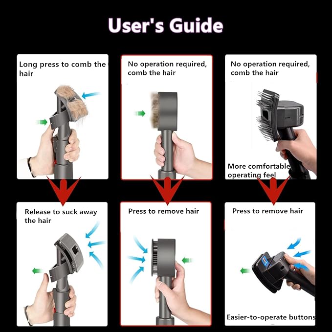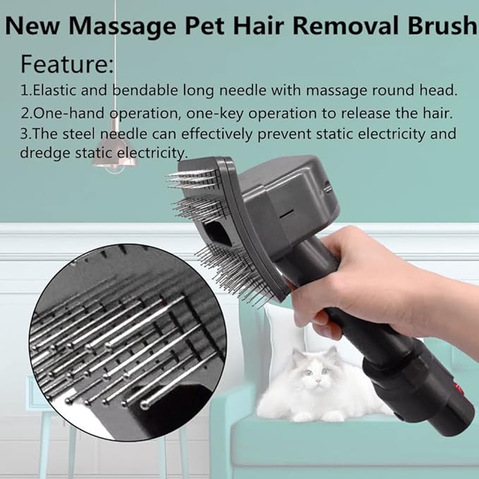 - One-hand operation, one-key operation to remove the hair:With the switch lock, there is no need to operate the vacuum cleaner, you can spare one hand to comfort the pet, so that the pet is no longer afraid and enjoy the whole massage and grooming process.