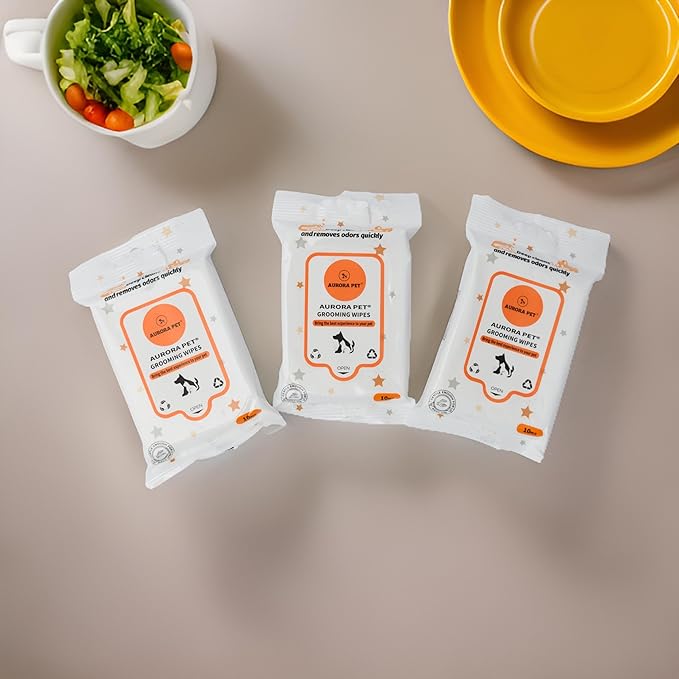 Aurora Pet Wipes – 100% Natural, Plant-Based Hypoallergenic Grooming Wipes for Dogs & Cats (120-Count Travel Pack)