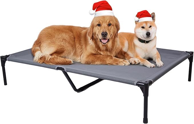 pettycare Elevated Outdoor Dog Bed - Dog Cots beds for Large Dogs XL, Heavy Duty Raised Dog Bed Waterproof, Cooling Elevated Dog Bed with Washable Teslin Mesh, Durable, Non Slip, 49 Inches, Grey