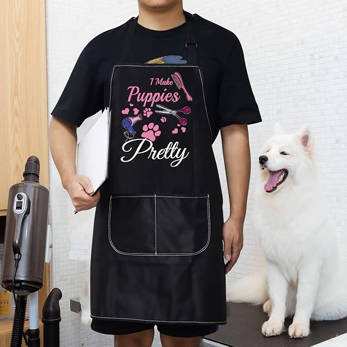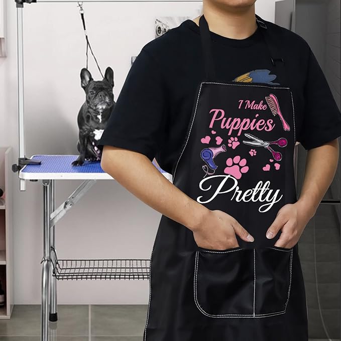 WZMPA Dog Groomer Apron With Pocket Dog Grooming Gifts I Make Puppies Pretty Adjustable Apron For Dog Stylist