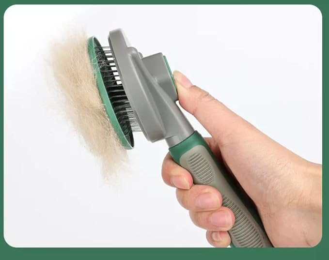 - hair drops off brush with one click of button - Simply push the button once and the bristles retract, allowing the hair to instantly drop off. Click the button again and the bristles of the pet slicker brush will pop back out so you're ready to brush again. Perfect for small, medium and large dogs with long or short hair.