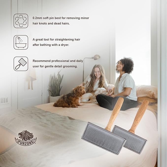 - ALL-IN-ONE SLICKER BRUSH (Package contains one brush): Sustainable, safe, durable, and user-friendly—everything professional groomers need! With Furzone’s Slicker Brush, you can easily untangle your dog's hair knots and remove loose fur before bathing them, helping to maintain a healthy coat for your pet.
