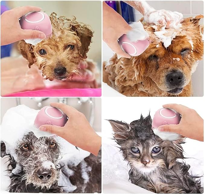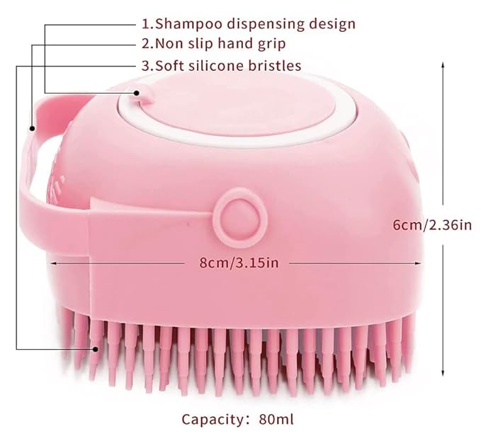 Pet Bath Massage Brush Puppy Dog Cat Grooming Cleaning Soft (Pink)