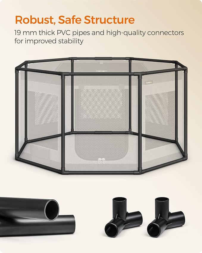- [Robust, Safe Structure] Supported by a strong PVC pipe frame, this dog playpen remains stable even with puppies jumping around in it. Resistant to deformation, it offers a safe and reliable habitat for your furry friends