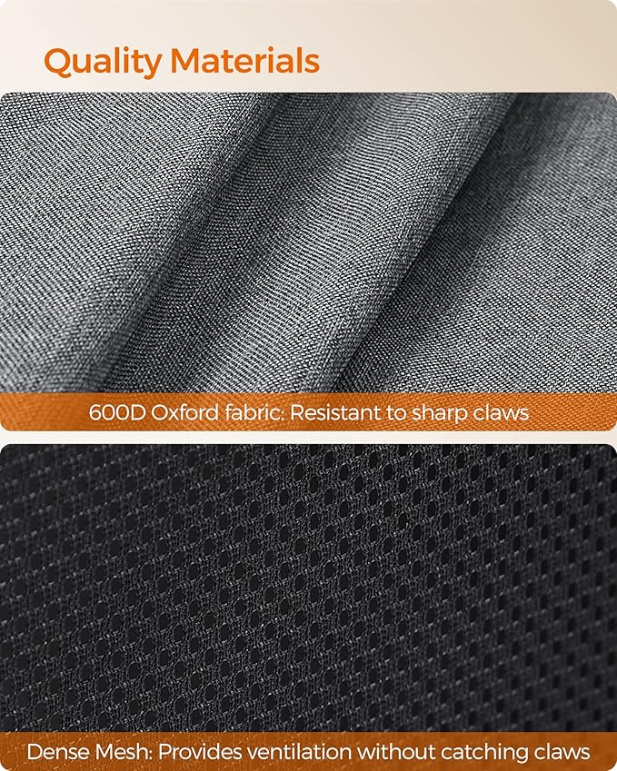 - [Durable & Well-Ventilated] Each side is constructed with 600D Oxford fabric and a tightly woven, dense mesh which is resistant to sharp claws and ventilated and durable to last for years while staying fresh