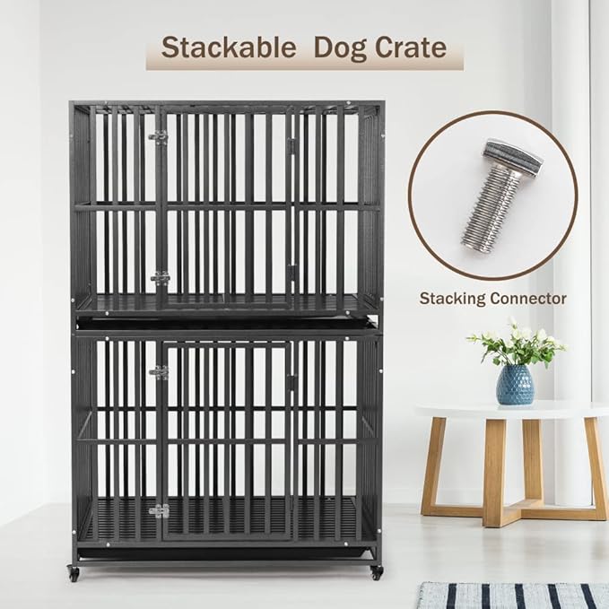 - Stackable Dog Crate: Our pet crate has a stackable design. If you have more than one large dog kennel, you can stack them to save more space. Note: Only dog cages of the same model can be stacked