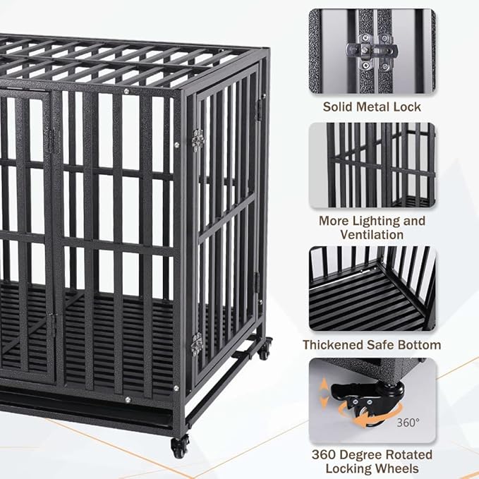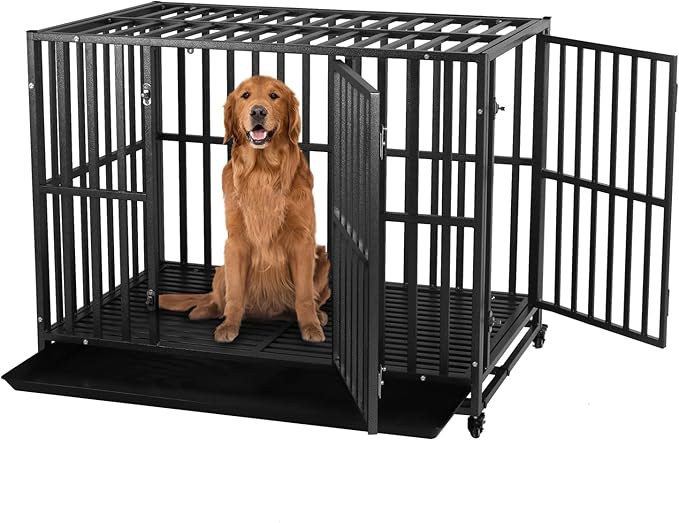 - Dimensions: The heavy duty dog cage measures 37.4"L X 23.6"W X 31.4"H, internal height of the dog cage (excluding wheels) is 29.1"H, providing enough space for your dog. Our big dog crate with wheel is ideal for most medium and large dogs. Equipped with a 3-year warranty, if you have any questions, please contact us immediately, we will reply to you within 24 hours