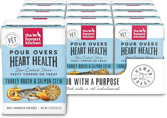 The Honest Kitchen Functional Pour Overs: Heart Health - Turkey Broth & Salmon Stew Dog Food Topper, 5.5 oz x12
