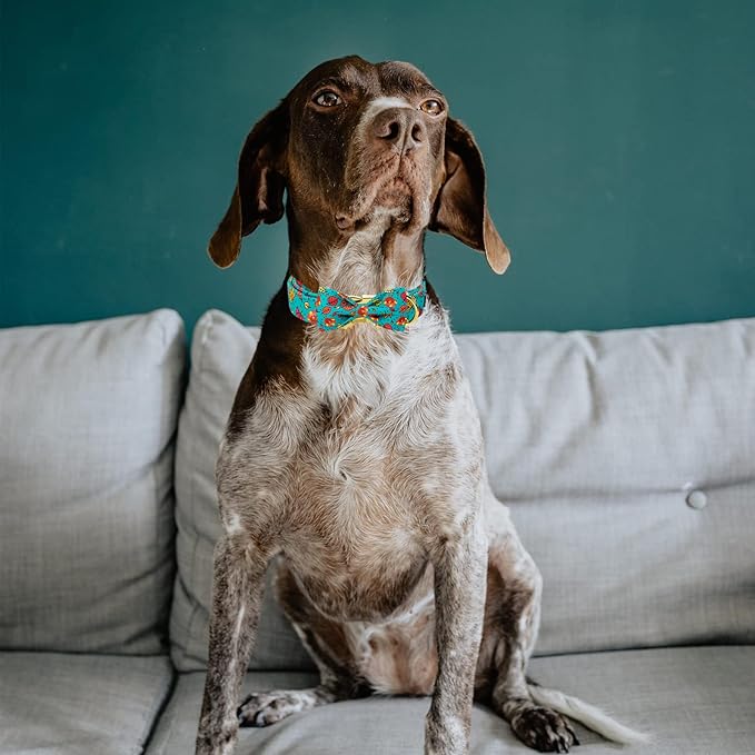 MR. CHUBBYFACE Thanksgiving Dog Collar Fall Maple and Turkey Dog Collar with Bow Adjustable Dog Collar Bowtie for Small Medium Large Dogs