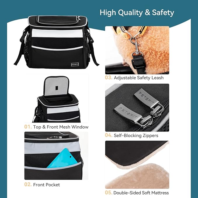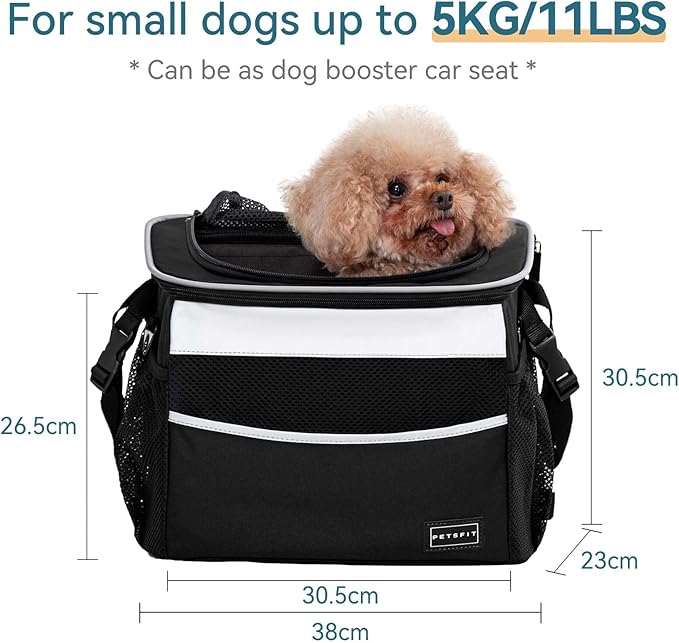 Petsfit Dog Bike Basket, Small Dog Car Seat with Front Pocket, Puppy Car Seat for Small Dogs and Pets (Black)