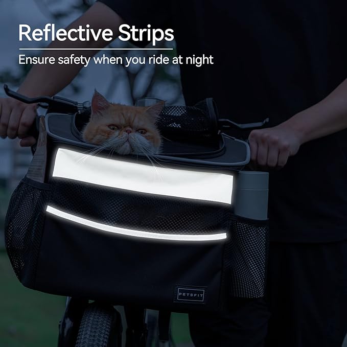 - SAFER & SECURE: Always keep Safety first! The built in adjustable safety leash to keep your dog from jumping out. The added reflective stripes for improved visibility in low-light night ridding, night driving or night walking and a padded bottom help improve the overall safety of the basket.