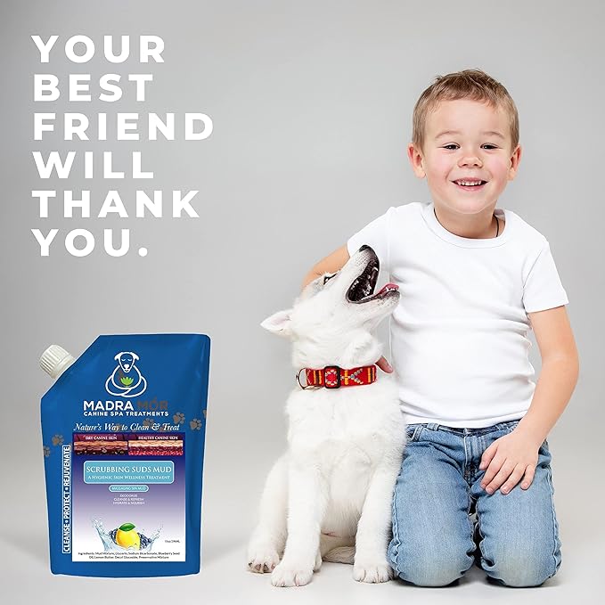 - 🌸 Amazing Smell- Dog shampoo for smelly dogs is taken to the next level with Madra Mor's dog shower mud. Give your dog new skin with nutrient-rich omega oils that help to absorb impurities and leave a lasting smell just like a dog deodorant.