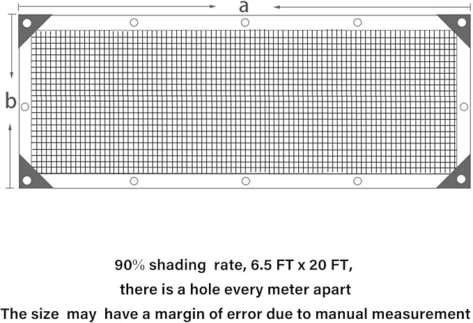 - 90% Shade Rate: Our Shade Cloth can resist rays and most sunlight while air can still flow through so as to create a comfortable cool and shaded place for people or plants.It blocks 90% of the sunshine and bring 10% the shadow, 10% of the sunshine can through it.