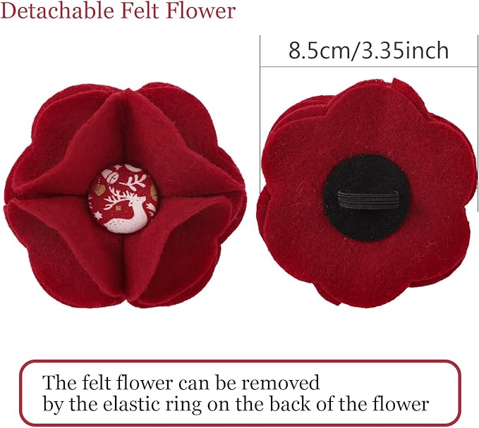 - <p>[WELL MATERIAL]:❤ The christmas dog collar is made of cotton, which is very soft and comfortable, and it won't hurt the dog's skin. Package includes a dog collar and a removable felt flower. ❤At the same time, cotton cloth is easy to clean. And We recommend hand washing to avoid the metal buckle being scratched in the washing machine.</p>