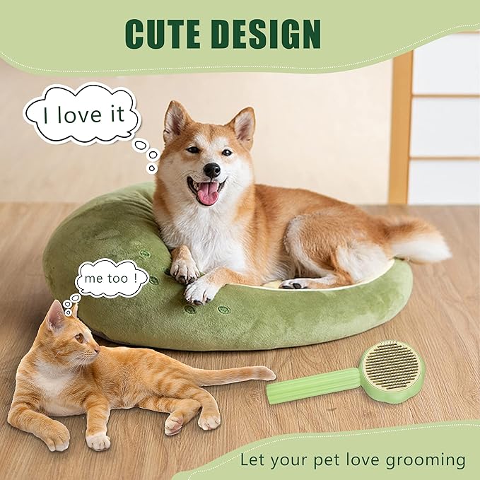 METREE Cat Hair Brush, Self Cleaning Pet Slicker Brush with Release Button, Grooming Brush for Shedding, Long or Short Haired Cats Dogs (Lime Green)